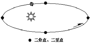 (1)在图中画出“神州六号” 发射升空时地球绕日公转的位置。(用圆圈表示地球,同时画出地轴)