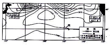 5、综合题 图为2014年12月4日20时00分北太平洋部分海区海平面等压线分布图。读图回答问题。(12分)