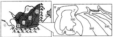 【小题2】图中甲地为阴坡,光照条件差,受寒冷北风的影响大;乙、丁处均位于山谷处,易受流水侵蚀作用;而丙处山脊处的阳坡,适宜建设窑洞。故选C。