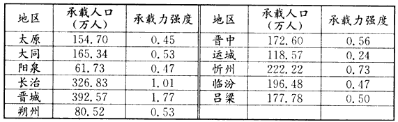 1、多选题 山西的水资源承载状况较为严峻,水资源已经成为制约山西省社会经济与生态环境协调发展的主要因素。承载力强度指标是指水资源承载人口与实际人口之比。读表一回答1~2题。