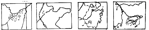 1.图中甲、乙、丙、丁四地何处可见到著名观潮景象2.有关图中四地气候特征的描述,不正确的是