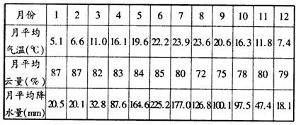2、单选题 读我国某城市(106.73°E,26.58°N,海拔1223.8米)气候资料统计表,回答1—2题。