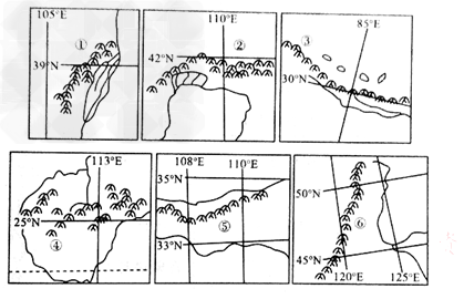 D.⑥山脉-- 第二级阶梯与第三级阶梯、种植业区与畜牧业区的分界线