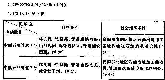 (3)试从自然条件和社会经济条件列表比较中缅石油管道和中俄石油管道建设的优缺点。(14分)