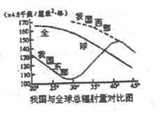 (4)我国西部为青藏高原,海拔高,空气稀薄(1分);气候干旱,晴天多(1分),对太阳辐射削弱较小(1分),所以地面得到的太阳辐