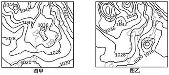 4、单选题 下图甲、图乙分别为某月13日9时和15日9时亚洲部分地区海平面等压线分布图,读图,完成下列问题。