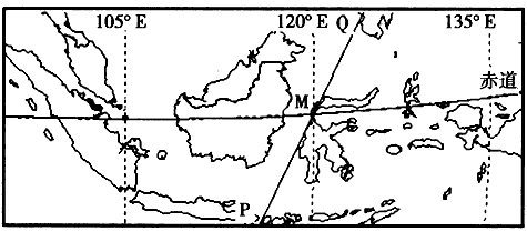 (4) 在图中标出此时太阳直射点M的位置,M的地理坐标是经度________,纬度________。