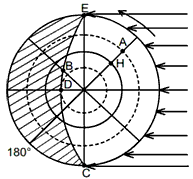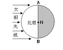 2、综合题 下图是一幅“以极地为中心的光照图”,读图完成下列问题。