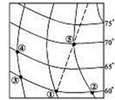 小题3:若此时图中⑤地为10时,则⑤地的昼长为