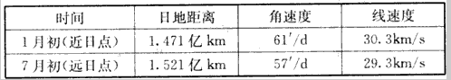 5、单选题 下表为地球在公转轨道不同位置时公转速度的变化资料,据此比较北极和南极极夜持续的天数