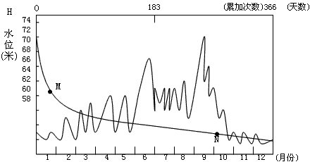 1、单选题  ? 水位是指河流某处的水面海拔高度,一年中等于和大于某一水位出现的次数之和称之为历时。读下面“水位过程线与历时曲线”图。回答(1)——(3)题。