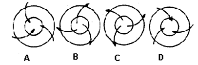 1、单选题 下列四图中,属于北半球反气旋的是 ( )