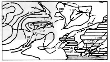 D.此时朝鲜半岛南端的气压在1015hPa和1020hPa之间