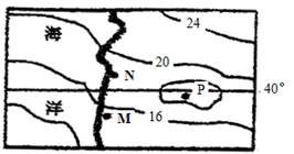 1、单选题 下图所示为一假想地区某月等温线分布,图中P处因受地形影响气温出现异常。读图完成下列各题。