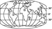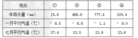 小题1:①②③④四地的气候主要由海陆热力性质差异造成的是( )