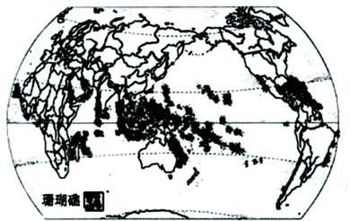 (1)从纬度和海水深浅两个方面简要概括珊瑚礁的分布规律。(2分)