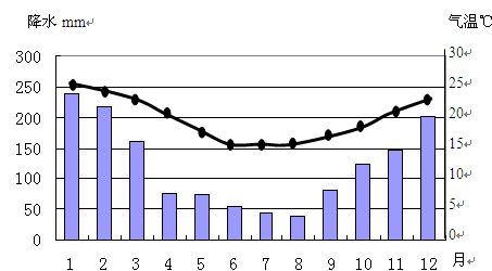 (3)气温温和,降水少(注意:只答气温或只答降水不给分)(2分)