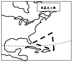 5、单选题 百慕大三角,被称为“魔鬼三角”,在这里许多先进的仪器都会失灵,而人员一旦遇险则基本没有生还的可能。为此,科学家作了很多解析,比如洋流说,气候说,电磁说,海底地形说等,涉及到许多地理科学理论。读材料及图,回答下列各题。