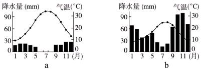 (3)b图所反映的气候特征是?;b所代表的气候类型在?图分布较广,该气候形成的原因是?。(5分)