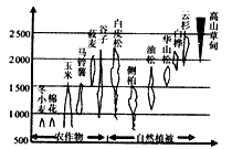 3、单选题 读“某地区农作物和植被的垂直分布图”,完成1—3题。