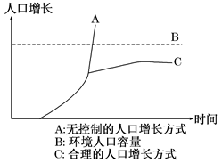 本题解析:本题考查环境人口容量与人口增长。合理的人口增长应该小于环境人口容量。无控制的人口增长会使人口数量超过环境人口容量,合理的人口容量一定要控制在环境人口容量以内。所以本题选择C选项。