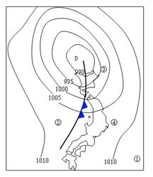 5、单选题 读2014年2月4日某地天气形势图,回答下列各题。