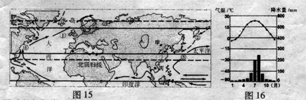 (3)图16表示甲、乙、丙、丁四地中, 地的气温和降水特点。
