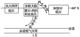 5、填空题 读“海平面等压线分布示意图”,完成下列问题。(8分)