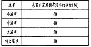 2.结合材料反映城市规模越小,家庭拥有汽车数量越多,而城市规模越大,家庭拥有汽车数量越少,主要是由于公共交通的发展程度的差异。