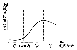 1.图示曲线反映出大城市发展的演变规律是2.③阶段大城市数量比重变化的根本原因是