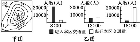1、单选题 下面甲图是我国某城市平均地租等值线(单位:元/平方米)分布示意图,乙图是该城市某一区域不同时间的地铁使用量统计图。据此完成问题。