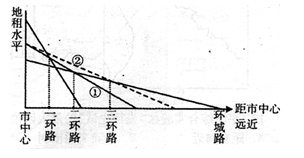 1.乙图反映的区域最可能是甲图中的2.甲图中平均地租等值线沿虚线向外凸出,其主要影响因素是