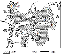 (2)根据重庆的发展可以推测,其主要的中心商务区可能位于A、B、C、D中的??点,判断依据是什么?(3分)