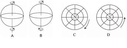2、单选题 下列关于地球自转方向的图示,正确的是