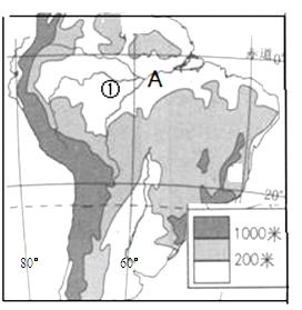 (1)根据图中经纬度位置可知,该地区位于巴西,图中A为亚马孙平原,其植被为热带雨林,在植被主要分布在热带雨林气候区,故还分布在非洲的刚果盆地和亚洲的东南亚地区。