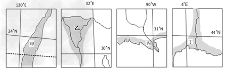 1、该三角洲地区最有可能位于下图中的
