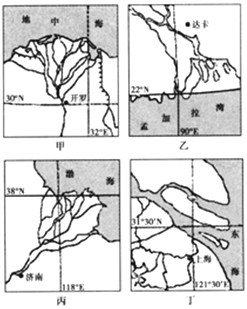 ?甲、乙、丙、丁的主要经济作物依次是?
