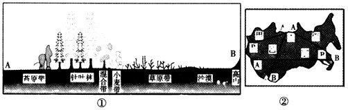 1、①图中植被、农业带的分布与②图中甲~丁四线段所经地区一致的是