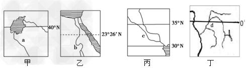 4、单选题 图中的甲、乙、丙、丁所示地区都是重要农业区。完成1—3题。