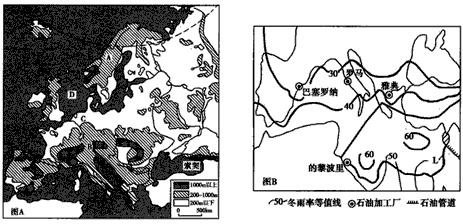 3、综合题 ? 读“世界局部地区图”(图A)与“地中海地区冬雨率等值线图”(图B)(冬雨率为冬季降水量占全年降水量的百分率,单位:%)回答下列问题。