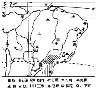 (3)甲地区为湿热的热带雨林气候区,不利于人类的居住;为了保护热带雨林;乙地区位于巴西高原,气候凉爽,适合人类居住;便于内地国土资源开发等。