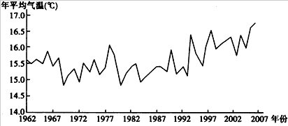 5、单选题 ? 《安徽省应对气候变化方案》提出,安徽省应对气候变化面临巨大挑战,必须加快推进产业结构优化升级,转变经济发展方式。下图表示1962年——2007年安徽省年平均气温变化。完成1—2题。