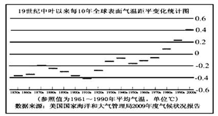 小题1:读图,根据图中气温距平变化趋势判断,19世纪50年代以来,全球气温波动上升,A、C错。 20世纪50年代以来,全球气温呈上升趋势,B对。20世纪70年代以后,全球气温呈上升趋势,D错。