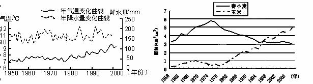 5、单选题 读某流域20世纪50年代以来的气候要素变化(左图)和气候变化对该流域农业生产的影响(右图),回答题。