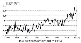 (1)1860年~2002年,全球平均气温总体发展趋势是