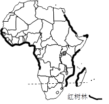 1、单选题 红树林是一种特有的常绿灌木和小乔木群落,一般分布于高潮线与低潮线之间的潮间带中。读非洲红树林分布图,回答下列各题。