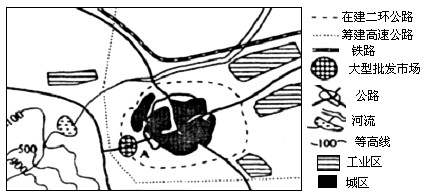 3、单选题 读某特大城市略图,该城市工业区布局的特点是