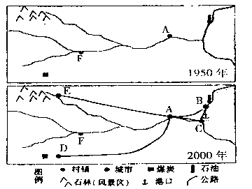 小题3:从交通条件分析,村镇A形成城市的主要条件是________________。村镇F没有形成城市的主要原因是________________。