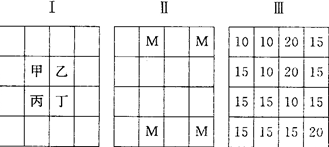 1、单选题 图网格资料Ⅰ中的甲乙丙丁是四块土地的代码,网格资料Ⅱ中的M为新建的地铁站位置,网格资料Ⅲ中的数据为目前地价,如果新地价随着离地铁站的距离而变化,计算公式为:新地价=原地价ⅹ(1+1/距离)。假设水平方向和垂直方向相邻方格间距离为1,斜角方向相邻方格间距离为1.4,则地铁站完工后,地价最高处为(?)