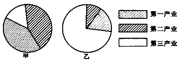 1、综合题 读“甲、乙两个国家的产业结构图”,回答下列问题(9分)